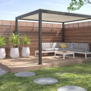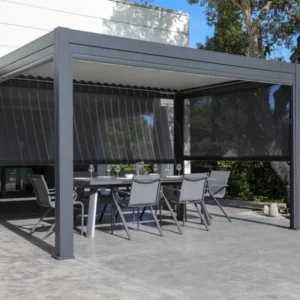 Pergola bioclimatique en aluminium Menea 4x3 motorisée grise