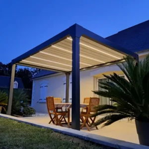 Pergola bioclimatique solaire en aluminium Anémone et intégralement équipée